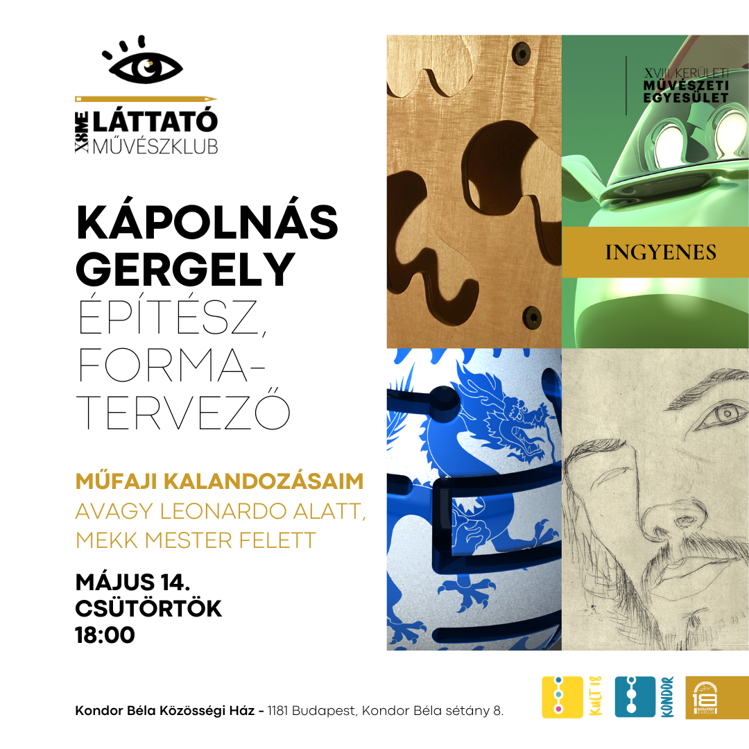 2026. május 14. – Kápolnás Gergely – építész, formatervező – Műfaji kalandozásaim, avagy Leonardo alatt, Mekk mester felett
